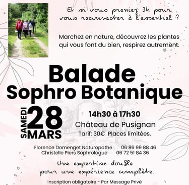 Le temps d’une Balade Sophro Botanique, nous vous invitons à vivre un moment simple et profondément ressourçant autour du Château de Pusignan.
